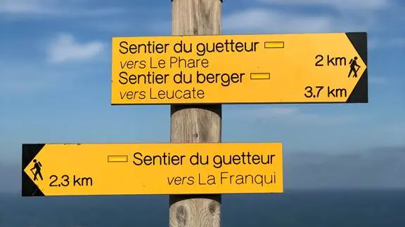 > Caution! Stay on the marked path and follow the yellow markings. Be careful: in strong Tramontane, do not approach the edge of the cliff, risk of falling. In summer, in hot weather, remember to bring enough water and a cap. Bring good shoes!